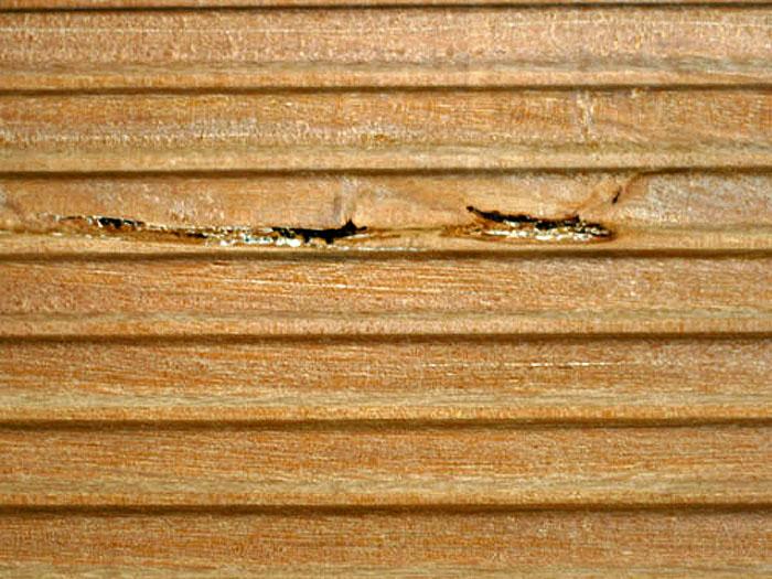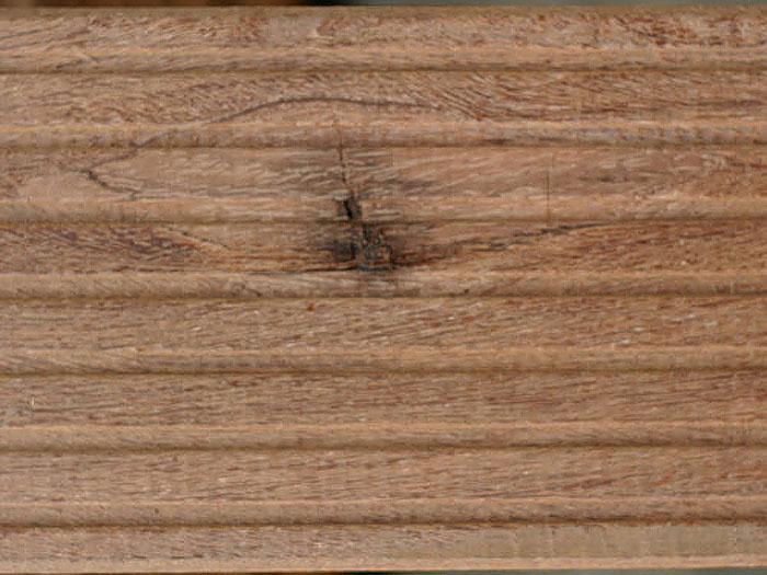 Auch Terrassendielen und Kanthölzer aus Bangkirai können kleine Astansätze aufweisen. Im Zuge der Bewitterung können sich diese lösen, so dass kleine Fehlstellen zurückbleiben. Sofern dabei scharfe Kanten entstehen, sollten diese bauseits abgeschliffen werden.
