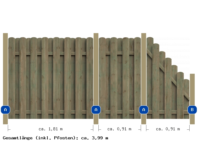 Übersicht der gesamten Zaunanlage Nehmen Sie aufgrund der hier im Planer angegebenen Maße keine Fundamentarbeiten vor! Vorrang vor den hier angegeben Maßen haben die Angaben in der Montageanleitung .