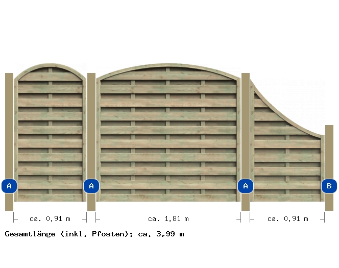 Übersicht der gesamten Zaunanlage Nehmen Sie aufgrund der hier im Planer angegebenen Maße keine Fundamentarbeiten vor! Vorrang vor den hier angegeben Maßen haben die Angaben in der Montageanleitung .