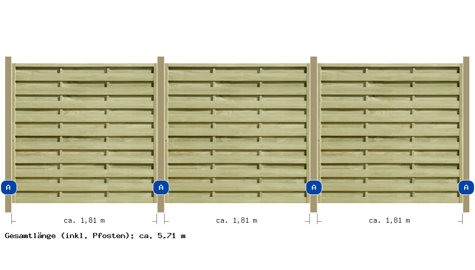 5,71m Dichtzaun Eco mit 7er Pfosten und Einschlaghülsen - ME27185