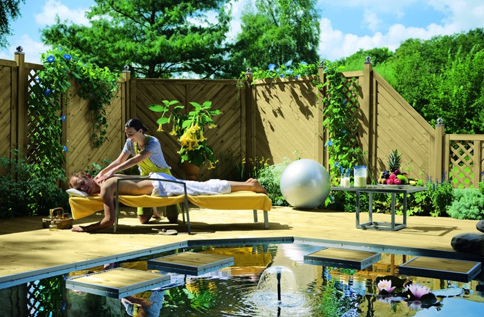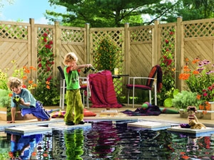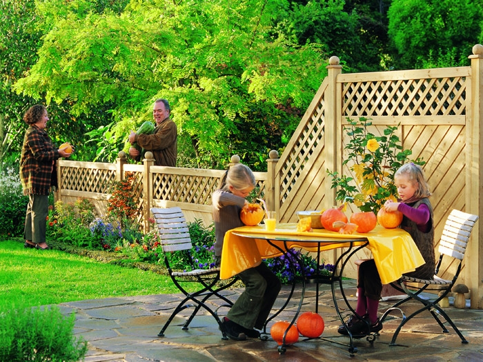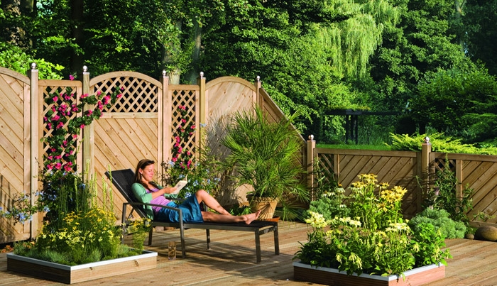 Holzschutz: im unteren Rahmen Drainagenut und Wasserablauflöcher, Zaunelement lässt sich auch waagerecht montieren