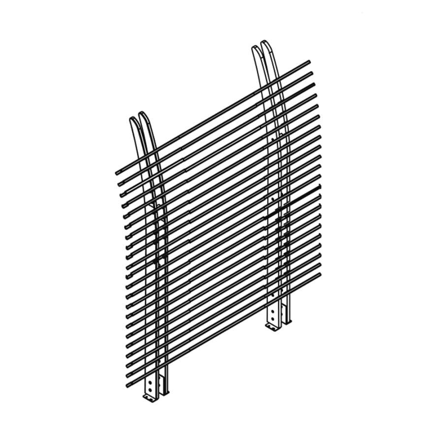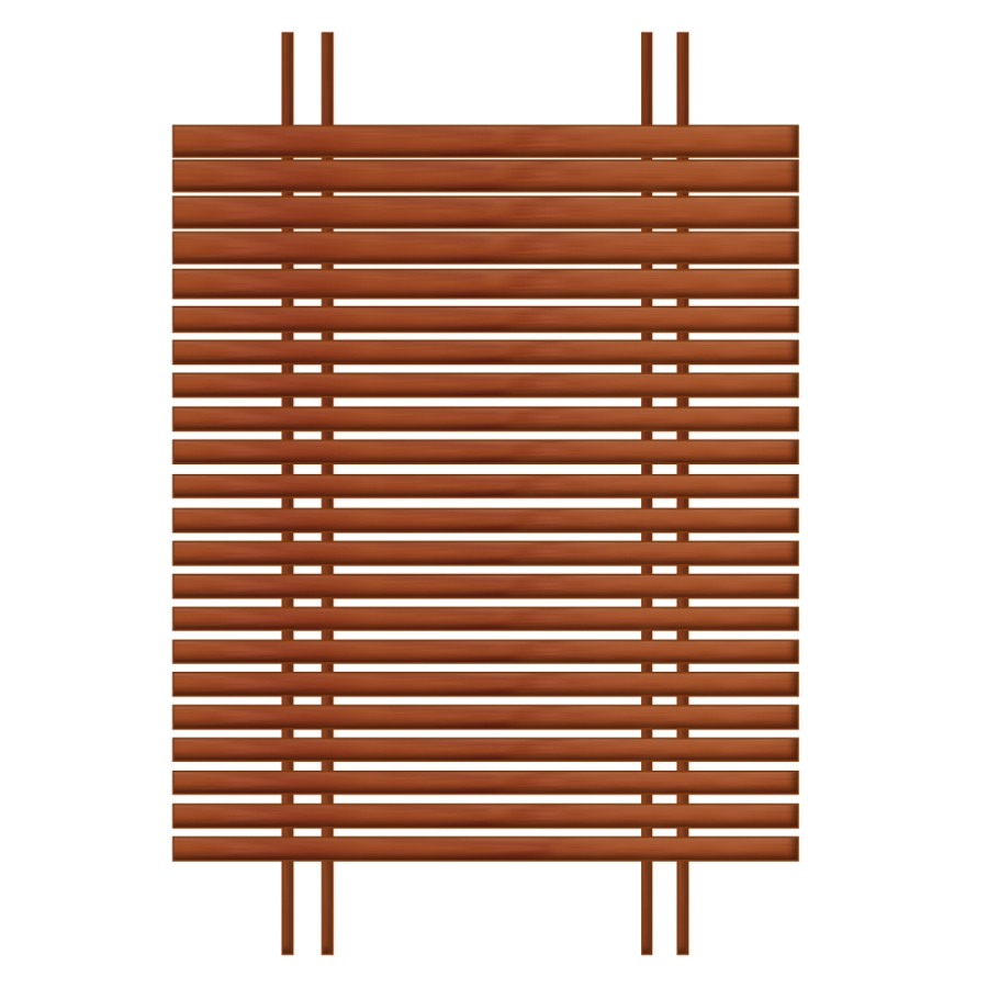 schräg gestellte Lamellen, oberer Teil leicht gebogen, ohne Rahmen, Profile auf Stelen eingefast, Abschlussprofil liegt auf ca. 165cm Höhe