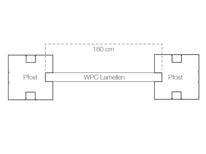 9 x WPC Lamellen, 2 x anthrazit pulverbeschichtete Alu-Abdeckleisten, 8 x anthrazit pulverbeschichtete Alu-Mittelleisten