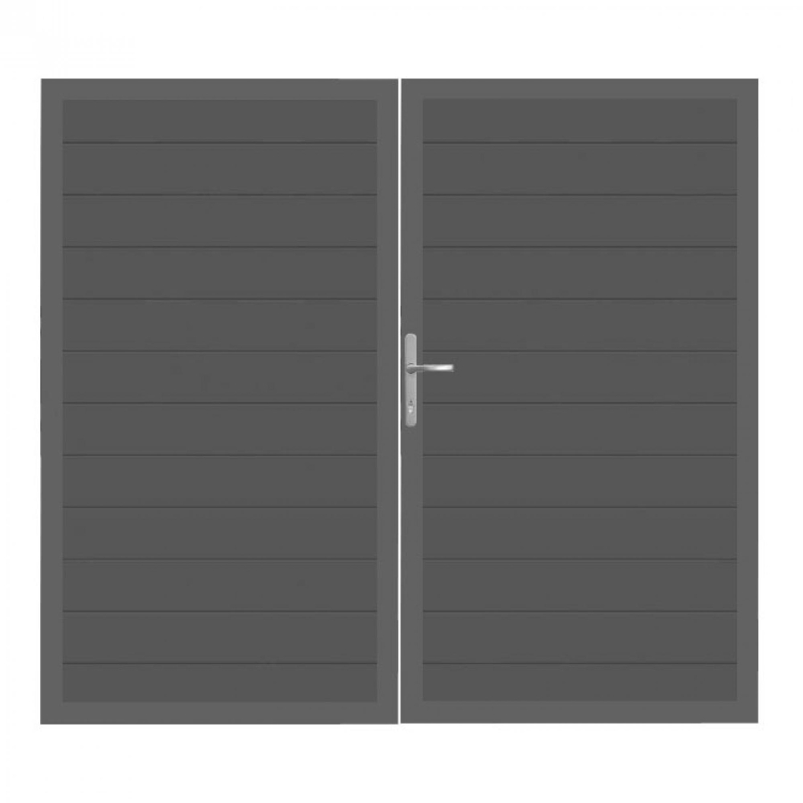 Das GrojaLumino Doppeltor besteht vollständig aus hochwertigem Aluminium. Sowohl der Rahmen als auch die Füllungen sind mit einer anthrazitfarbenen Pulverbeschichtung versehen, was das Tor extrem wetterbeständig macht und einen minimalen Pflegeaufwand nach sich zieht. Dieses Material garantiert neben der ansprechenden Optik eine langanhaltende Farbechtheit und Rostbeständigkeit.