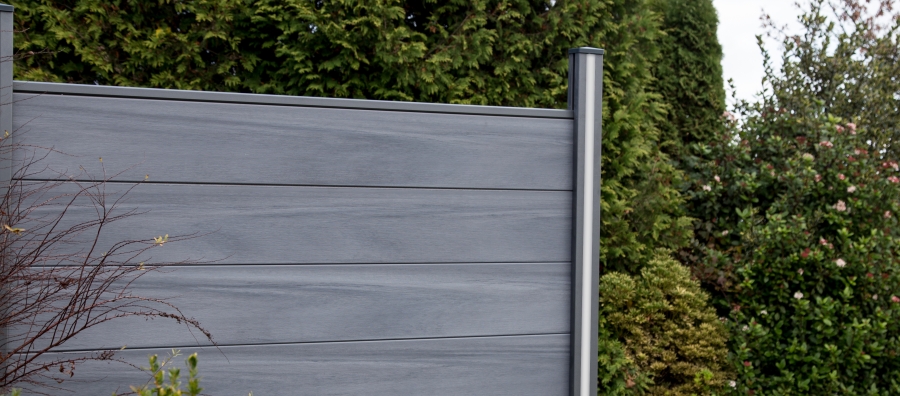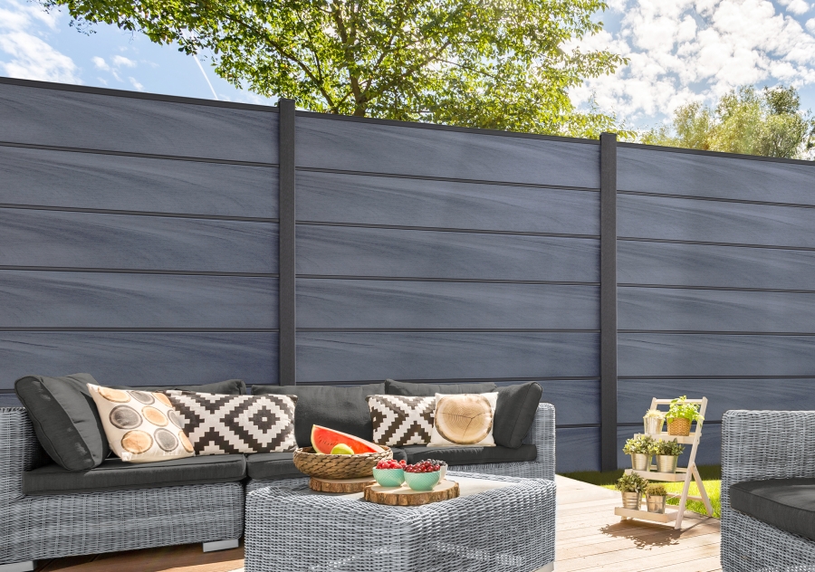 Verwandeln Sie Ihren Gartenbereich mit dem GrojaSolid Grande BPC Steckzaun-Set 180x180cm in elegantem Steingrau